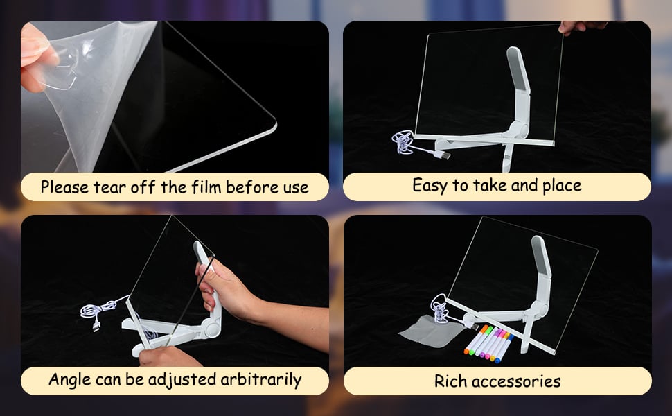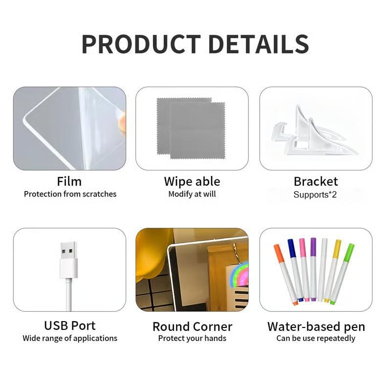 🚀Transform your space into a hub of creativity with our innovative Acrylic Dry Erase Board featuring built-in LED lights. Crafted from transparent acrylic for a sleek, crystal-clear surface, this board ensures effortless writing and erasing. Plus, with a protective film to prevent scratches during transportation (don't forget to remove it before use!), it's guaranteed to arrive in pristine condition.🚀